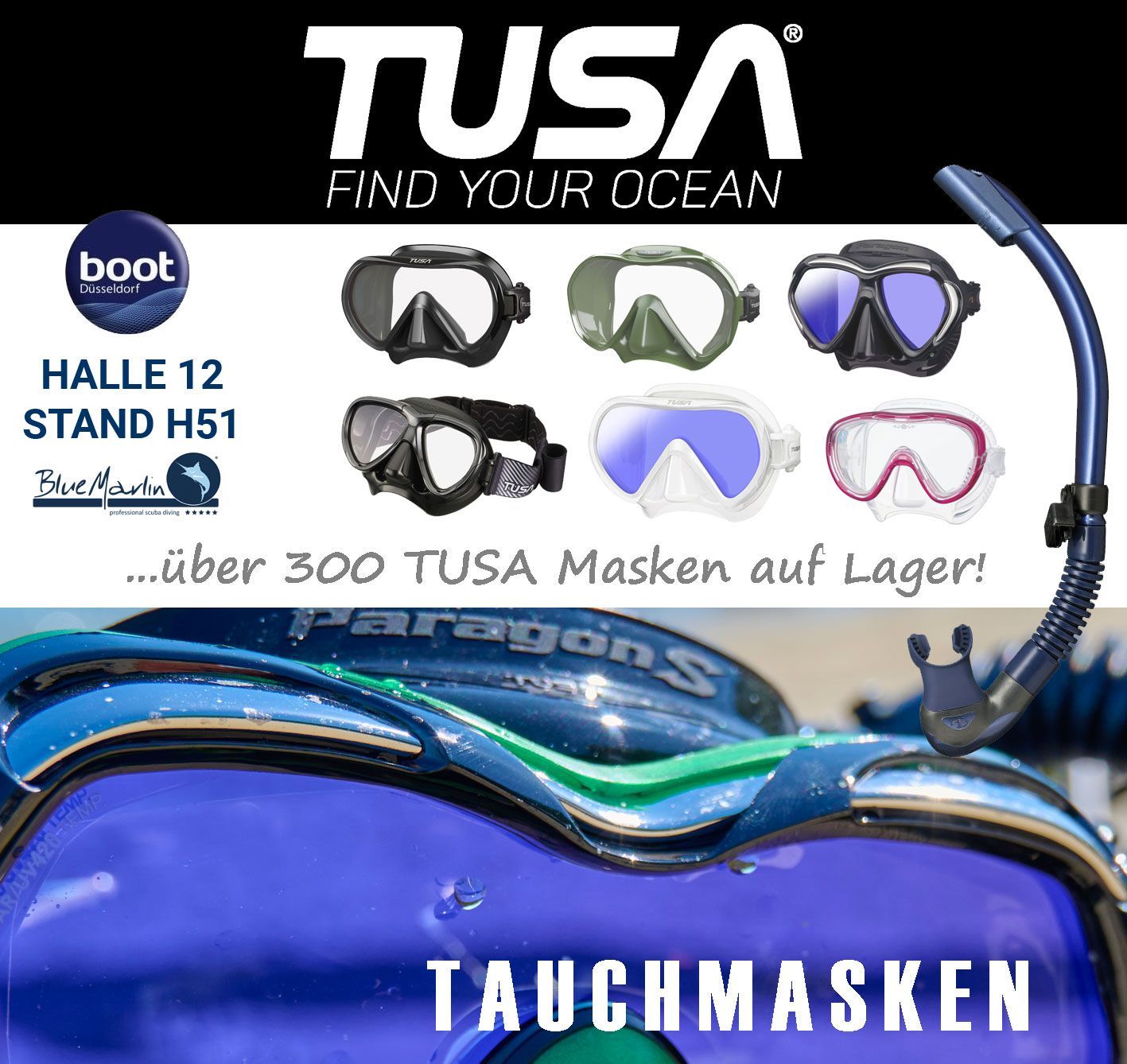 Liebe Tauchfreunde, BOOT 2025 - wir sind dabei! Und freuen uns seeeeehr, euch vom 17.-25.01.2026 in Halle 12, Stand: 12H51 zu begrüßen! Lasst euch überraschen, die Planungen laufen auf Hochtouren und wir haben uns schon jetzt ein paar richtig schöne BlueMarlin Specials für die Saison 2026 überlegt - im BlueMarlin Store, unserer Tauchschule und der Tauchbasis am Fühlinger See! Wir freuen uns auf euch! Eure BlueMarlins